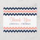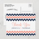 Simple mais élégante, la collection moderne chevron mariage est un design époustouflant avec un joli imprimé zig-zag de couleur rose, marine et blanche, parfait pour toute célébration mariage moderne. Ces cartes postales de remerciement peuvent être personnalisées pour votre occasion spéciale et vous rendraient un parfait merci pour votre mariage, douche nuptiale, fête de fiançailles, fête d'anniversaire et bien d'autres occasions spéciales. Ajoutez votre libellé personnalisé à cette conception à l'aide des cases "Modifier ce modèle de conception" situées à droite de l'élément, ou cliquez sur le bouton bleu "Customiser" pour arranger le texte, modifier les polices et les couleurs et ajouter des informations ou des images supplémentaires à cette conception.