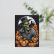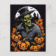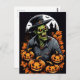 Désaltérer les frissons d'Halloween avec cette carte postale captivante ! Un redoutable zombie, vêtu d'un casquette, émerge de l'obscurité, entouré d'un cercle de citrouilles sculptés de manière complexe. Une incarnation de l'allure hantante de la fête. Partagez le frisson d'Halloween avec cette carte postale effrayante.