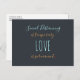 Envoyez votre message d'amour et vos salutations à votre famille et à vos amis pendant la distance sociale / rester à la maison à cause du coronavirus isolation sociale avec cette carte postale avec un script de typographie motivationnelle stimulant indiquant "La distanciation sociale est l'amour temporaire est permanent" en bleu menthe, moutarde jaune, rouge et noir script d'écriture contemporaine. ++++++++++++++++++ Personnalisez avec votre texte et votre signature à l'arrière. ++++++++++++++++++ Convient également comme message de compréhension pour le report d'un événement tel qu'un mariage, douche nuptiale, fête d'anniversaire, remise de diplômes ou toute autre célébration ou anniversaire de famille ou d'amis.