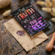 Un verset de la Bible délicatement dessiné indique la vérité vous rendra libres. Les mots sont entourés de motifs et de dessins complexes, créant une œuvre d'art visuellement captivante et inspirante.