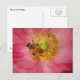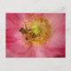 Cette carte postale présente une abeille de miel occupée à polliniser les étamines jaunes d'un charmant coquelicot rose annuel Shirley. L'abeille dorée et noire à l'intérieur des délicats pétales roses crée une impression impressionniste et peinte.