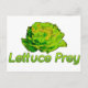 Texte : "Laitue Prey" dans une police verte brillante avec des feuilles de laitue ouverte au-dessus. Parfait pour les végétariens, les amateurs de salades et tous ceux qui aiment jouer au jeu de mots.