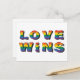Répandez la positivité et l'inclusion avec cette carte postale "Love Wins" vibrante. Avec des lettres audacieuses et de couleur arc-en-ciel, au style rétro et ondulé, ce design célèbre le pouvoir de l'amour et de l'égalité. Parfait pour le Mois de la Fierté, les occasions spéciales, ou envoyer des notes de soutien à des proches. Cette carte postale est un joyeux rappel que l'amour conquiert vraiment tous, ce qui en fait un cadeau ou un souvenir significatif pour les alliés et les membres de la communauté LGBTQ+.