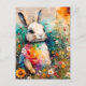 Un beau lapin aux fleur sauvage dans le style d'un collage médiatique mixte