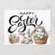 Une carte de vœux de Joyeuses Pâques avec une belle typographie et deux petits lapins mignons