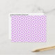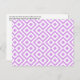Jolie carte postale lavande et motif blanche géométrique, au design original. Les diamants de la lavande aux bordures blanches sont entourés de méandres violets clairs qui les entourent. Des zigzags blancs séparent les chemins sinueux violets pâles et les diamants décalés. numériquement créé une image. Copyright © 2013 Claire E. Skinner. Tous droits réservés.