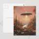 Carte Postale Le chat blanc et un OVNI