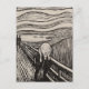 Le Cri (1895), créé par le peintre norvégien Edvard Munch, est une lithographie monochrome de son œuvre la plus célèbre. Dans cette version en noir et blanc, l'image obsédante conserve l'intensité émotionnelle du tableau original. La figure centrale, avec son visage tourmenté et ses mains levées, se tient sur un pont avec un arrière-plan turbulent et abstrait, suggérant un profond tourment psychologique. Les lignes tourbillonnantes et les contrastes audacieux soulignent l'angoisse de la figure, incarnant des thèmes universels d'anxiété et de détresse existentielle. Cette version lithographiée capture l'émotion crue et brute de l'originale dans une expression plus simplifiée, mais tout aussi puissante. Utilisez les outils de conception pour ajouter du texte personnalisé ou personnaliser l'image.