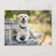 Carte Postale Le Labrador Jaune Pose Sur Le Banc
