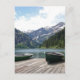 Beau lac alpin tranquille avec des bateaux et des montagnes verdoyantes en arrière - plan. Sur les produits de fête, les faveurs et les cadeaux.