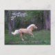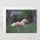 Palomino fonctionnant avec élégance au printemps parmi des arbres en bois de chien