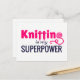 Tricot est ma superpuissance, qu’est-ce que la vôtre ? Cette carte postale dit qu'elle est forte et fière. Le dos est vide, ce qui en fait la carte parfaite à inclure avec votre prochain cadeau tricot.