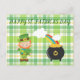 Souhaitez à quelqu'un un, "Happy Jour de la Saint Patrick", avec cette carte postale lumineuse et joyeuse. Dispose d'un arrière - plan plaid vert, avec un Leprechaun et un Pot of Gold.