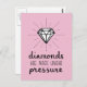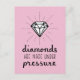Une carte postale avec une citation en losange qui dit "les diamants sont faits sous pression" ! Cette conception utilise un écriture décontracté manuscrit et une brosse ainsi qu'une pièce en diamant pour arranger un design élégant de typographie. Envoyez cette carte de voeux d'encouragement au destinataire pour les encourager à tirer parti de sa force intérieure pour la pression et le stress qu'elle affronte va être ce qui fait d'elle un diamant!