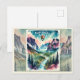 Voici une carte postale de paysage de montagne de style vintage, avec une palette de couleurs d'aquarelle et une atmosphère nostalgique.