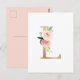 Carte postale L monogramme Elégante et fantaisiste. Il présente des fleurs d'aquarelle, de la verdure et des feuilles d'or imitation.
