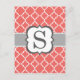 Carte Postale Lettre S Monogramme Blanche Corail Quatrefeuilles
