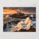 Waves break over the rocks, but the lighthouse stands fast as clouds gather in the evening on this beautiful postcard.