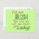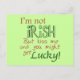 Drôle T-shirts et vêtements de la Saint Patrick's Day pour la scène du bar ou toute autre scène. La Saint Patrick's Day Pickup Line chemises et marchandises lire, je ne suis pas irlandais mais Embrasse-moi et vous pourriez avoir Lucky!