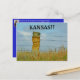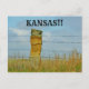 Une photo d'un visage sculpté sur un poteau de pierre avec le ciel bleu, l'herbe des Prairies, et le barbelé qui est tiré closeup qui est brillant et coloré. c'est au sud de Lucas Kansas sur la route Pittoresque. C'est sur une CARTE POST.