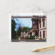 Une belle carte postale personnalisée et sur mesure en lin - Image de la maison du manoir Leland Stanford à Sacramento, Californie, avec monogramme et initiale, et un design de couleur vintage/retro à l'arrière-plan.