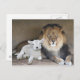 Lion et agneau ensemble, évidemment le résultat de deux photos combinées, également disponible en carte de voeux