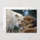 Photo adorable d'un lion et d'une lionne qui s'étourdissent l'un l'autre.