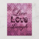 Carte Postale Live Love Laugh Pink Damask Pattern