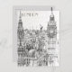 Cette carte postale de voyage, à la main dessinée à la façon d'un croquis, offre une vue sur les toits de Londres.