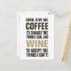 Lord Give Me Coffee and Wine ! Pour changer les choses que je ne peux pas et Wine à propos de la chose, je ne peux pas. Cartes postales de motivation amusantes.