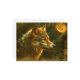 un loup détaillé et réaliste, à l'arrière-plan d'une pleine lune. Le loup est orné d'accents dorés qui mettent en évidence ses yeux et sa fourrure, entourés d'une aura de lumière qui éclaire l'image et lui donne une atmosphère mystique.
