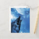 Un loup fantôme hurle sur la lune d'hiver. Un design insolite et unique montrant la pleine lune dans le ciel avec des étoiles stylisées.