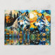 Carte Postale Loups gris et Fleurs sauvages