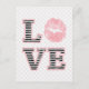 Ce design présente un ensemble pastel de lèvres et LOVE dans un motif rayé noir et blanc.