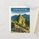 Voyagez au cœur de l'Empire inca avec cette carte postale de voyage spectaculaire sur Machu Picchu Pérou ! Cette illustration graphique captivante présente les ruines incas emblématiques nichées haut dans les montagnes des Andes. Le design capture l'échelle impressionnante de cette ville ancienne, dressée contre les sommets péruviens dramatiques.