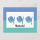 Trois poissons amusants dans l'océan Pacifique, avec une mer bleue-vert en dessous et un ciel bleu au-dessus sur cette adorable carte de remerciement. Mahalo ! Cela signifie Merci en hawaïen. Vous pouvez cliquer sur Personnaliser pour changer le mot sur le devant, ou les mots au dos, qui donnent actuellement la traduction anglaise du mot hawaïen pour Merci.