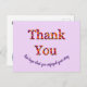 Les locations de maisons et de chambres sont devenues de plus en plus populaires ces dernières années. Faites la différence avec votre location grâce à cette carte postale lumineuse et gaie qui laisse une impression finale et de suivi lumineuse et gaie sur vos invités. Les mots "merci" apparaissent dans un motif tie-dye sur cette carte postale bon marché. Le texte "Nous espérons que vous avez apprécié votre séjour" peut être personnalisé et forme un "sourire" au bas de la carte postale. Le texte au verso peut également être personnalisé et permet un espace suffisant pour lister vos noms ou l'adresse de votre maison. La couleur de fond unie peut également être personnalisée si vous le souhaitez.