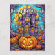 Cette carte postale Happy Halloween créative présente l'illustration d'une maison hantée à l'aspect éffrayant. N'hésitez pas à ajuster toutes les options disponibles comme vous le souhaitez.