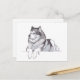 Dessin d'encre en noir, blanc et nuances de gris d'un Malamute d'Alaska.