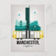 La ville de Manchester, en Angleterre, avec une version stylisée de ses monuments et de son paysage urbain, y compris un tramway Metrolink, Manchester Town Hall et Old Trafford - la maison de Manchester United FC.