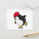 Carte Postale Manchot faisant du patinage sur glace avec un chap