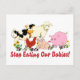 Une vache, un mouton, un cochon, un lapin et un poulet disent "Arrêtez de manger nos bébés !" Bonne façon de rappeler aux mangeurs de viande qu'ils mangent les enfants de quelqu'un.