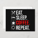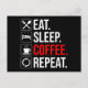 Carte Postale Manger. Dormir. Café. Recommencer