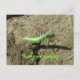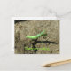 Une mante verte et brillante qui prie est en train de bronzer sur un rocher. Sa longue ombre noire donne de la profondeur à l'image. Reglez vos amis et votre famille avec vos expériences d'été par carte postale.
