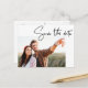 Partagez la joie de votre fiançailles et de votre invitation pour enregistrer la date de votre prochain mariage avec notre "Modern Handlettering Save the Date Script Photo Postcard". Ce modèle de carte postale exquis vous permet de présenter votre photo de fiançailles horizontale (paysage) préférée, en créant une belle invitation personnalisée pour votre famille et vos amis. Customisez la carte postale avec votre photo fiançailles choisie, ajoutant une touche de romantisme et d'excitation à votre enregistrement de l'annonce de date. Inclure le nom de la future mariée et du futur marié, ainsi que la date du mariage, l'emplacement et le site Web du mariage (modifier ou supprimer le cas échéant) pour créer une invitation unique et mémorable. La carte postale est dotée d'un script moderne de style manuscrit (écrit à la main) à l'avant, dans le coin supérieur droit, ajoutant une touche chic et sophistiquée au design. La typographie chic et le style moderne reflètent l'élégance de votre prochaine célébration mariage. Le modèle vous permet également de personnaliser l'adresse de retour, ce qui permet à vos invités de répondre et de partager l'excitation de votre journée spéciale. Que vous planifiez une cérémonie intime ou une grande aventure, notre "Modern Handlettering Save the Date Script Photo Postcard" donne le ton parfait à votre mariage, créant une impression durable sur vos invités. Embrassez la romance de votre histoire d'amour et créez des souvenirs chéris avec cette étonnante et personnalisée enregistrer l'invitation de la date. Contactez info@lddesignloft.com si vous avez besoin d'aide avec ce modèle.