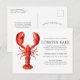 Cartes d'invitation personnalisées au thème du homard rouge pour votre prochaine fête du homard ou événement de fruits de mer. Elles présentent une illustration de style aquarelle d'un homard rouge. Autour de cela, des espaces sont prévus pour vos informations d'événement uniques.
