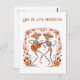 Donnez vie à l'esprit de célébration avec cette carte postale personnalisable Mariachi Spirits, parfaite pour Día de los Muertos ! Le design comprend deux mariachis joyeux en squelette dansant et jouant de la guitare, entourés de vibrants accents floraux dans les tons chauds orange et terreux. Personnalisez le texte en gras en haut avec votre propre message d'accueil, votre propre titre d'événement — idéal pour les invitations de fêtes, les notes de saison ou l'affichage pendant les festivités du Jour des morts. Une façon amusante et sincère d'honorer la tradition et de partager la joie avec vos amis et votre famille. Personnalisable à l'avant comme à l'arrière !