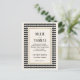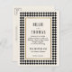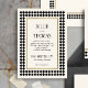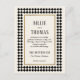 Pour donner le ton à une mariage moderne où les clients portent tous du noir et blanc, la réception se trouve dans un club de jazz à la décoration art déco, où l'on peut parler facilement et où l'on boit des négronis et des martinis secs tout en se baladant sur la musique d'un groupe de jazz. Inspiré par les sols intemporels à motifs en damier apparus dans l'architecture depuis le premier siècle, le motif en damier noir et blanc a surgi à maintes reprises à travers les âges. Tourné quarante-cinq degrés et utilisé comme cadre, ce motif se sent haut de gamme et la mode en avant. Ce faire-part de mariage de carte postale abordable est un excellent choix pour le couple à la recherche d'argent avec une modeste liste de quêtes et un fort sens du style.