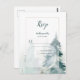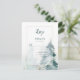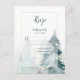 Carte postale RSVP de mariage rustique de pin sur un arrière - plan enneigé. Parfait pour un mariage d'hiver.
