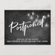 Dans ce joli design, j'ai utilisé une police de calligraphie audacieuse et moderne pour créer une superposition de typographie graphique blanche en lisant "Postponed". L'arrière - plan était couvert d'une image représentant un tableau de bord texturé. Superposition qui est un amas de lumières Edison vintage rondes blanches. Remplissez les blancs du modèle avec vos détails pour personnaliser le design. Toutes les couches ont été ajoutées séparément et laissées déverrouillées pour vous donner un contrôle de conception maximal. // 111 //